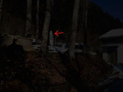 歓待の西洋室の前庭から見て、少し高みに上った榊の木の前あたり。